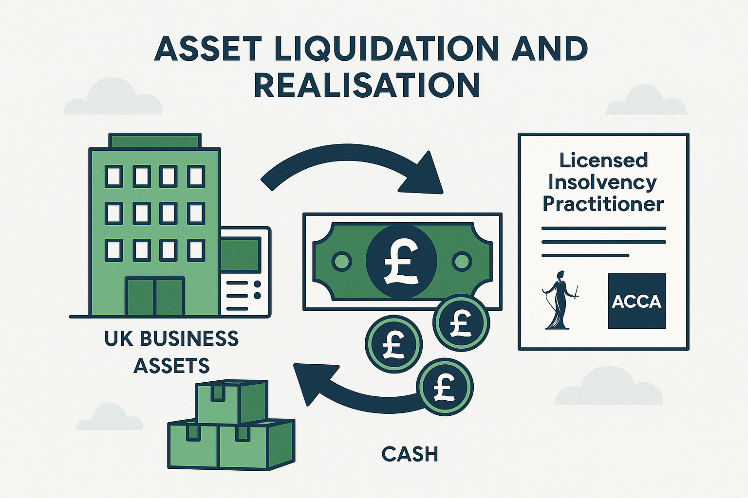 The liquidator assesses the company's assets and determines the best way to liquidate them to maximise returns for creditors according to the hierarchy established by the Insolvency Act 1986, ensuring professional oversight and regulatory compliance throughout the process.